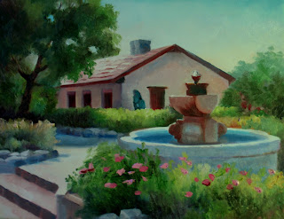 I revised this one after class today, brightened the sky, made the tree more sensible, took out the statue, brightened the wall of the house, extended the front wall, and made the fountain cleaner. I think it's much better, and am also lowering the price.